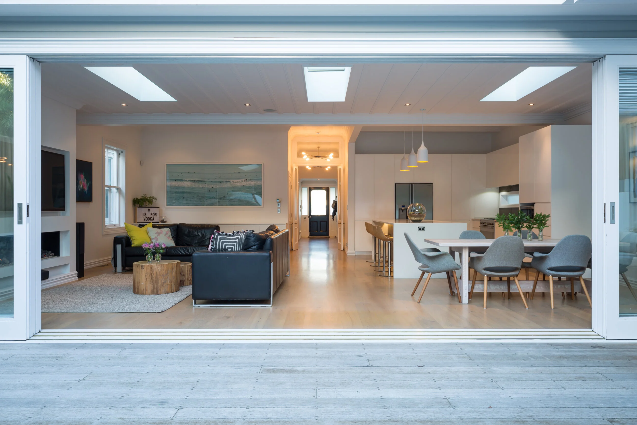 This delightful little project in Freemans Bay, Auckland, involved the reconfiguration and extension of the rear of the home to create a large open plan living, kitchen, dining space that connects seamlessly with outdoor living areas. As is common for inner city suburbs the net site area was not large (less than 400sqm) but the spaciousness of the extension and the way it connects with the outdoors maximises every square millimeter, turning it into a home that is perfect for family living and entertaining. Landscaped gardens, louvres, open decking and grass areas offer different experiences day and night and through the different seasons.